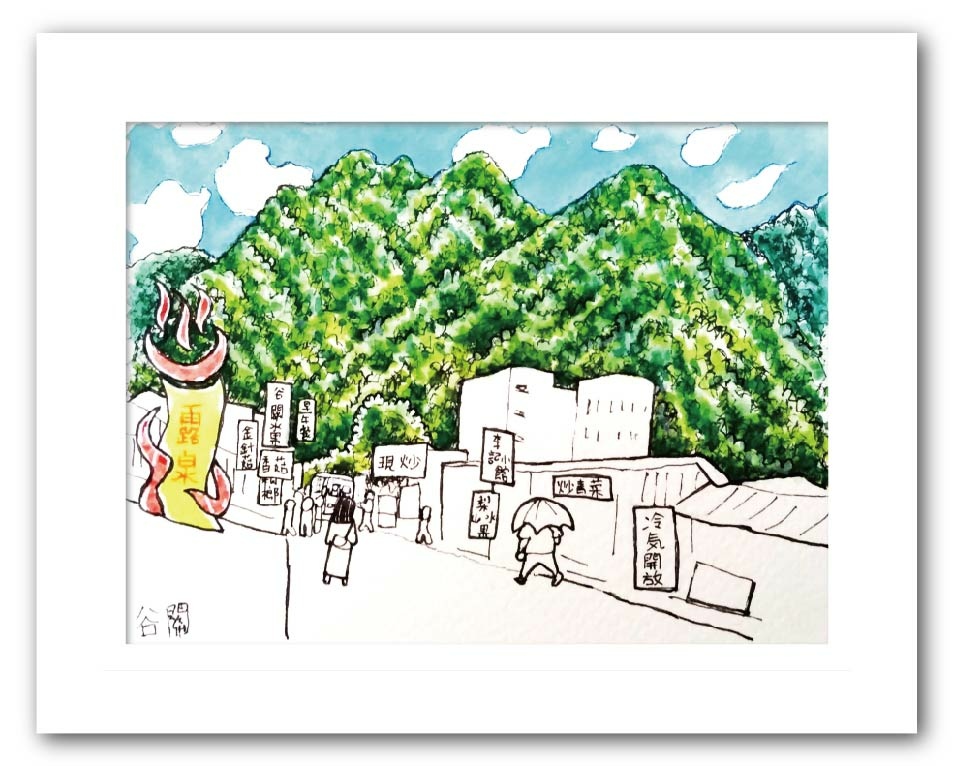 從高鐵台中站搭153線公車至谷關,車程2小時的窗外風景,由繁華的市街一路幻化成大甲溪河床上比人還大的石頭,一下車,噢!這裡是雪山山脈呀!是地質學家提出的,由石英砂岩組成的達見砂岩層啊!看那溫泉山產街上面的翠綠山峰,其氣質明顯和西部麓山帶不一樣,散發出一種古老有深度的磁場呢!